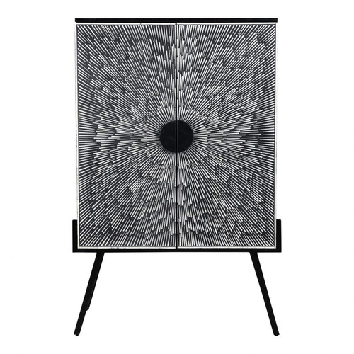 Shine on with the Sunburst Wine Cabinet. This black-and-white camel bone and resin affair will leave you starstruck every time you reach for a bottle. Two wide swinging doors leave plenty of space for your wine collection. Suitable for residential and commercial environments.